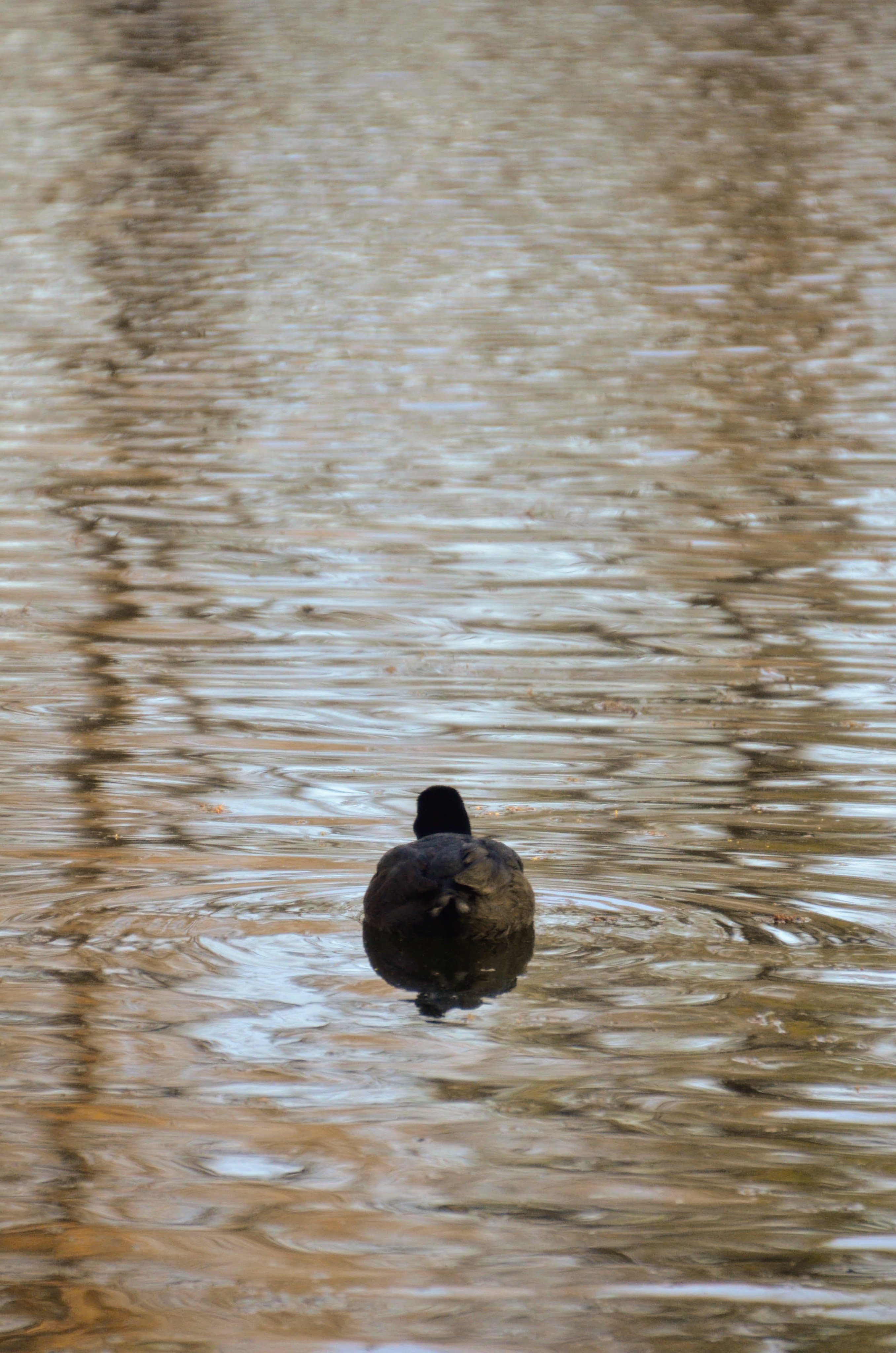 Some of the early blooms had fallen into the water and left a nice splash of color layered over the surface of the water. After a number of attempts and stooping over to get the look I wanted, I stood up satisfied with what I could get.